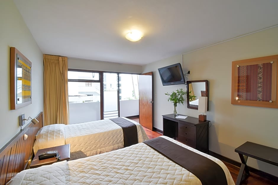 Features flat-screen TV, fans and city views.